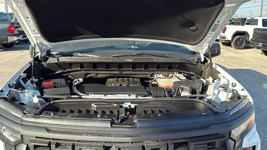 This 2025 Chevrolet Silverado 1500 Custom in Summit White comes with the following features: 2.7L I4 Turbocharged DOHC 16V LEV3-SULEV30 310hp 8-Speed Automatic RWD Custom Convenience Package (Electric Rear-Window Defogger, EZ Lift Power Lock & Release Tailgate, LED Cargo Area Lighting, Remote Vehicle Starter System, and Theft Deterrent System (Unauthorized Entry)), Custom Value Package, High Capacity Suspension Package, Preferred Equipment Group 1CX (10-Way Power Driver Seat w/Lumbar, 120-Volt Bed Mounted Power Outlet, 120-Volt Interior Power Outlet, 3.5 Monochromatic Display Driver Info Center, Bluetooth® For Phone, Color-Keyed Carpeting Floor Covering, Deep-Tinted Glass, Dual Rear USB Ports (Charge Only), Electronic Cruise Control, Front Frame-Mounted Black Recovery Hooks, Front Rubberized Vinyl Floor Mats, HD Rear Vision Camera, Manual Tilt Wheel Steering Column, OnStar Services Capable, Power Front Windows w/Driver Express Up/Down, Power Front Windows w/Passenger Express Down, Power Rear Windows w/Express Down, Rear 60/40 Folding Bench Seat (Folds Up), Rear Rubberized-Vinyl Floor Mats, Remote Keyless Entry, SiriusXM Trial Subscription, Standard Tailgate, Teen Driver, Tire Pressure Monitoring System, and Wi-Fi Hot Spot Capable), Trailering Package (Hitch Guidance), 8-Speed Automatic, Black Cloth, 3.42 Rear Axle Ratio, 4-Wheel Disc Brakes, 40/20/40 Front Split-Bench Seat, 6 Speakers, 6-Speaker Audio System, ABS brakes, Air Conditioning, Alloy wheels, AM/FM radio: SiriusXM, Apple CarPlay/Android Auto, Auto High-beam Headlights, Automatic Emergency Braking, Brake assist, Bumpers: body-color, Cloth Seat Trim, Compass, Delay-off headlights, Driver door bin, Driver vanity mirror, Dual front impact airbags, Dual front side impact airbags, Electronic Stability Control, Emergency communication system: OnStar, Following Distance Indicator, Forward Collision Alert, Front anti-roll bar, Front Center Armrest w/Storage, Front License Plate Kit, Front Pedestrian Braking, Front reading lights, Front wheel independent suspension, Fully automatic headlights, Heated door mirrors, Illuminated entry, IntelliBeam Automatic High Beam On/Off, Lane Keep Assist w/Lane Departure Warning, Low tire pressure warning, Occupant sensing airbag, Outside temperature display, Overhead airbag, Overhead console, Panic alarm, Passenger door bin, Passenger vanity mirror, Power door mirrors, Power driver seat, Power steering, Power windows, Premium audio system: Che
